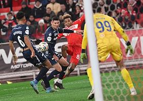 Мир Российская Премьер-Лига (РПЛ) 2025/2026. 18-й тур. Матч между командами "Спартак" (Москва) - "Динамо М" (Москва) на стадионе "Лукойл Арена". Игрок команды "Динамо" Константин Тюкавин (в центре) во время матча.
