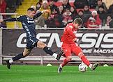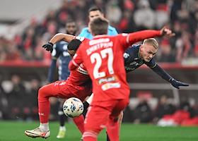 Мир Российская Премьер-Лига (РПЛ) 2025/2026. 18-й тур. Матч между командами "Спартак" (Москва) - "Динамо М" (Москва) на стадионе "Лукойл Арена". Игрок команды "Спартак" Игорь Дмитриев (справа) во время матча.