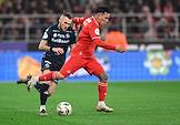 Мир Российская Премьер-Лига (РПЛ) 2025/2026. 18-й тур. Матч между командами "Спартак" (Москва) - "Динамо М" (Москва) на стадионе "Лукойл Арена". Игрок команды "Динамо" Дмитрий Скопинцев (справа) и игрок команды "Спартак" Эсекьель Барко (слева) во время матча.