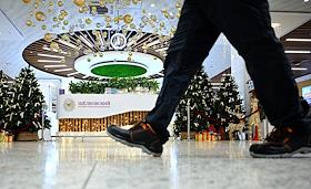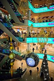 Торговый центр "Щёлковский". Жанровая фотография. Новогоднее оформление атриума торгового центра.