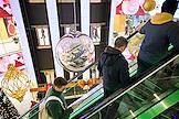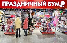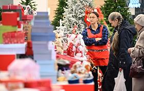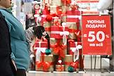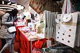 Торговый центр "Щёлковский". Жанровая фотография. Прилавок с новогодними сувенирами. Подарочные пакеты.
