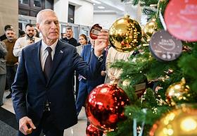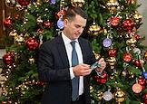 Церемония открытия ежегодной всероссийской акции "Елка желаний" с участием представителей всех фракций Государственной думы (ГД) России. Председатель комитета ГД России по физической культуре и спорту Олег Матыцин во время церемонии.