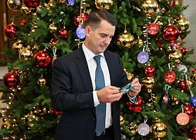Церемония открытия ежегодной всероссийской акции "Елка желаний" с участием представителей всех фракций Государственной думы (ГД) России. Председатель комитета ГД России по труду, социальной политике и делам ветеранов Ярослав Нилов во время церемонии.