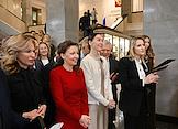 Церемония открытия ежегодной всероссийской акции "Елка желаний" с участием представителей всех фракций Государственной думы (ГД) России. Слева направо: член комитета ГД России по труду, социальной политике и делам ветеранов Екатерина Стенякина, заместитель председателя ГД России Анна Кузнецова, первый заместитель председателя комитета ГД России по просвещению Алена Аршинова, председатель комитета ГД России по безопасности и противодействию коррупции Василий Пискарев и председатель комитета ГД России по развитию гражданского общества, вопросам общественных и религиозных объединений Яна Лантратова во время церемонии.