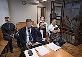 Судебное заседание по делу генерального директора "Локалкитчен" Антона Лозина, директора производителя готовой фасоли "Савон-К" Владимира Шина, повара Карима Норматова и главы отдела качества сервиса Елены Машковой, обвиняемых в массовом отравлении лобио со смертельными исходами в 2024 году, в Люблинском районном суде. Генеральный директор "Локалкитчен" Антон Лоза (слева) и директор компании - производителя фасоли "Савон-К" Владимир Шин (справа) во время заседания суда.