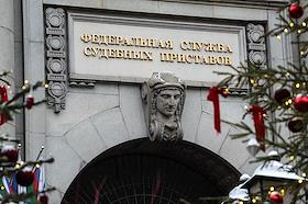 Виды Москвы. Жанровая фотография. Вывеска над аркой в здании Федеральной службы судебных приставов (ФССП) России.