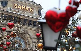 Виды Москвы. Жанровая фотография. Новогодние украшения в виде сердечек у здания Московского международного торгового банка на Кузнецком мосту.