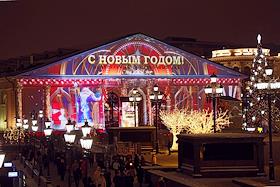 Виды Москвы. Жанровая фотография. Новогодние декорации в сквере перед Государственным академическим Большим театром (ГАБТ).