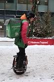 Виды Москвы. Жанровая фотография. Курьер российского онлайн-сервиса доставки товаров и готовой еды "Купер" на моноколесе на территории Московского международного делового центра "Москва-Сити".
