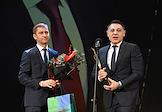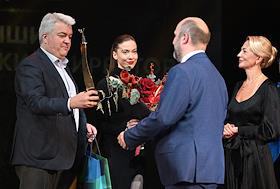 XXIII церемония награждения лауреатов премии "ТОП-1000 российских менеджеров" в Музыкальном театре "Геликон-опера". Генеральный директор ПАО "Мегафон" Хачатур Помбухчан (в центре) и основатель премии рейтинга "ТОП-1000 российских менеджеров" Дмитрий Зеленин (слева) на церемонии.