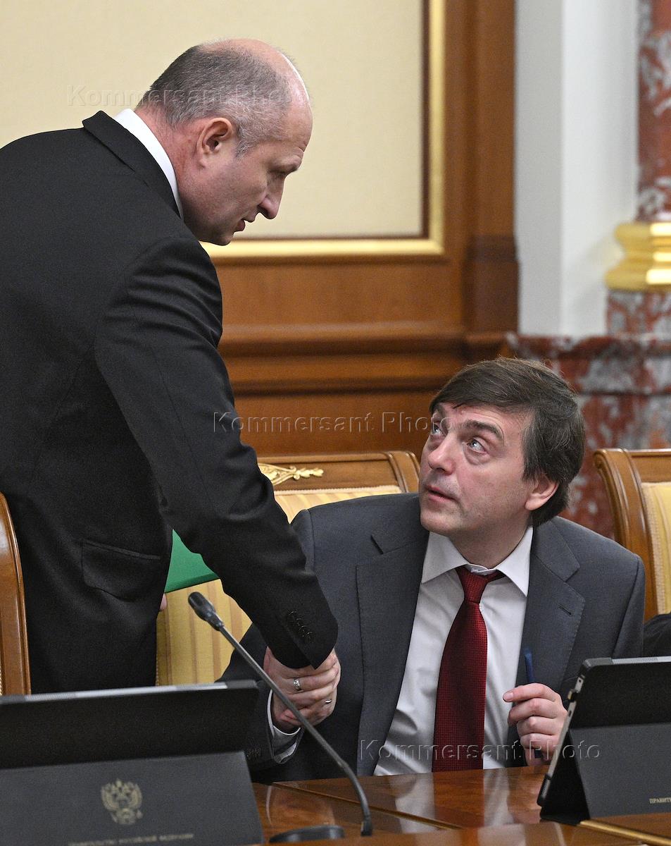Заседание правительства России. Министр просвещения России Сергей Кравцов (справа) перед началом заседания.