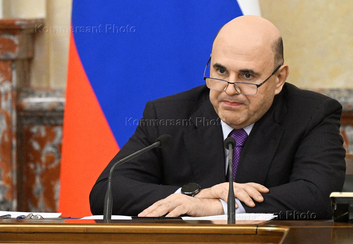 Заседание правительства России. Председатель правительства России Михаил Мишустин во время заседания.