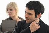 Вернисаж американского художника, дизайнера Генри Александра Леви Ask Us If He Was Our Son в галерее "Триумф". Американский художник Генри Александр Леви (слева) и певица Глюкоза (справа) на вернисаже.
