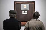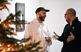 Вернисаж американского художника, дизайнера Генри Александра Леви Ask Us If He Was Our Son в галерее "Триумф". Журналист Павел Камин (слева) на вернисаже.