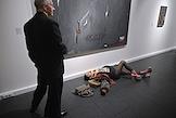 Вернисаж американского художника, дизайнера Генри Александра Леви Ask Us If He Was Our Son в галерее "Триумф". Коллекционер и издатель Пьер-Кристиан Броше на вернисаже.