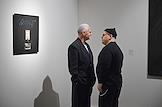 Вернисаж американского художника, дизайнера Генри Александра Леви Ask Us If He Was Our Son в галерее "Триумф". Коллекционер и издатель Пьер-Кристиан Броше (слева) на вернисаже.