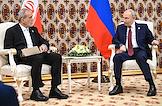 Рабочая поездка президента России Владимира Путина в Туркменистан. Пленарное заседание международного форума на тему "Мир и доверие: единство целей в интересах устойчивого будущего" в конгресс-центре Туркменистана. Президент России Владимир Путин (справа) и президент Ирана Масуд Пезешкиан (слева) во время двусторонней встречи глав участниц в рамках форума.