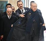 Рабочая поездка президента России Владимира Путина в Туркменистан. Пленарное заседание международного форума на тему "Мир и доверие: единство целей в интересах устойчивого будущего" в конгресс-центре Туркменистана. Президент Турции Реджеп Тайип Эрдоган (справа) перед началом заседания.