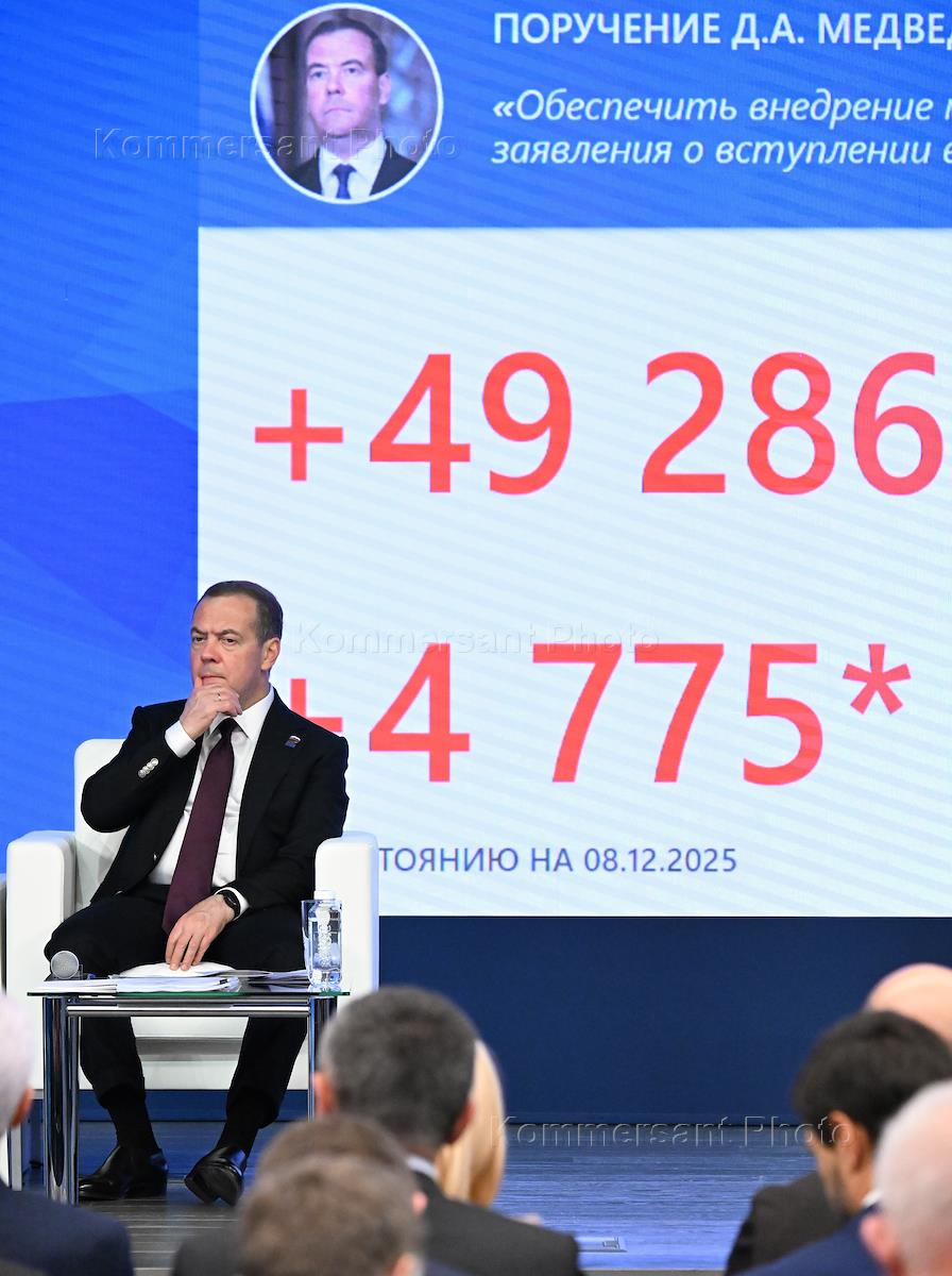 Заседание Генерального Совета партии "Единая Россия" в Центральном исполкоме партии "Единая Россия". Заместитель председателя Совета Безопасности России, председатель партии "Единая Россия" Дмитрий Медведев во время заседания.