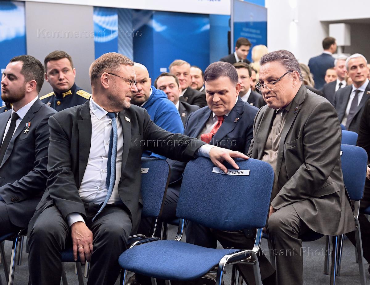 Заседание Генерального Совета партии "Единая Россия" в Центральном исполкоме партии "Единая Россия". Представитель в Совете Федерации (СФ) России от исполнительного органа государственной власти Ленинградской области Сергей Перминов (в центре) во время заседания.