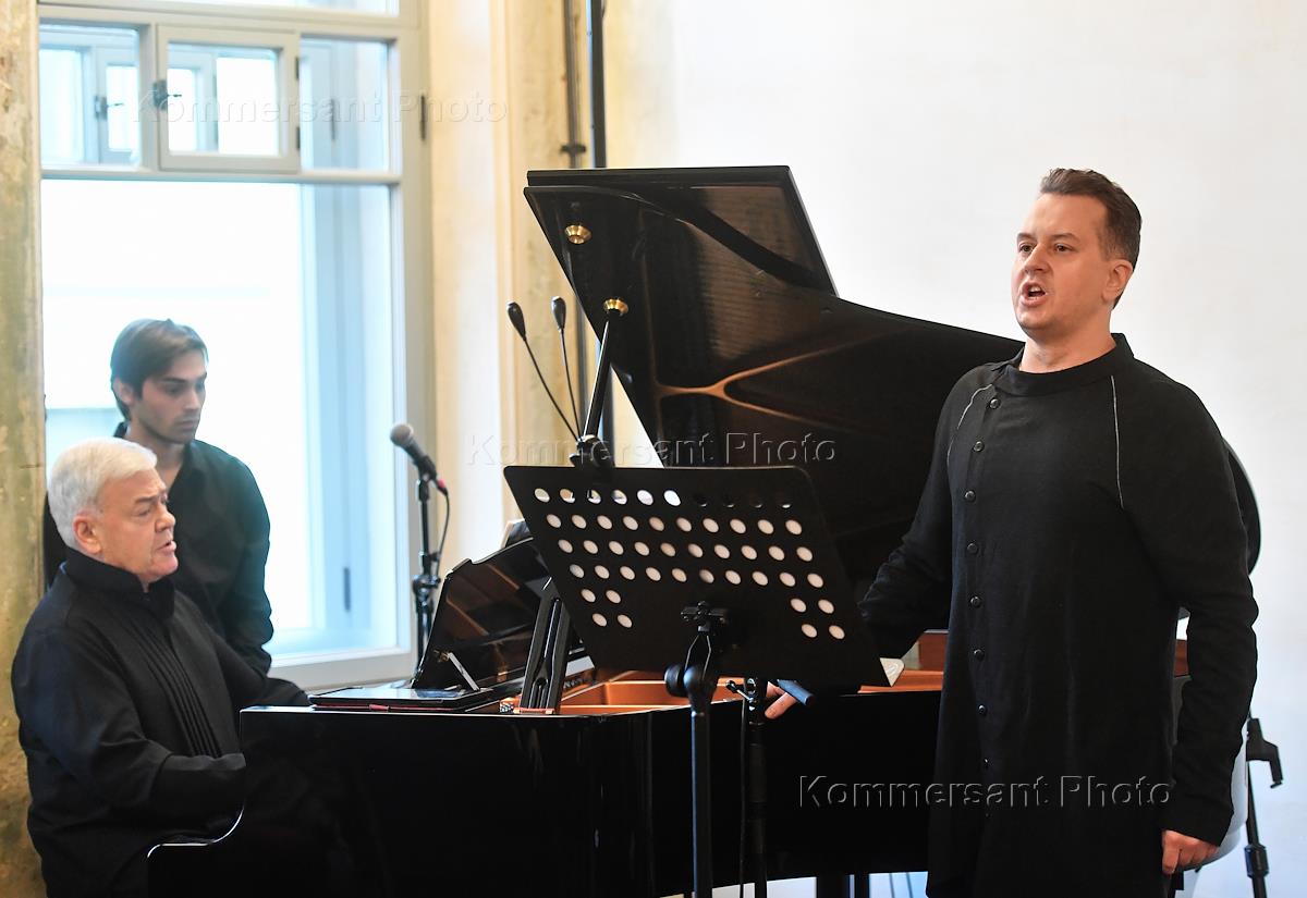 Церемония открытия Музея ОБЭРИУ в отреставрированной квартире поэта Александра Введенского и выставки "Комнаты ОБЭРИУ". Пианист Алексей Гариболь (слева) на церемонии.