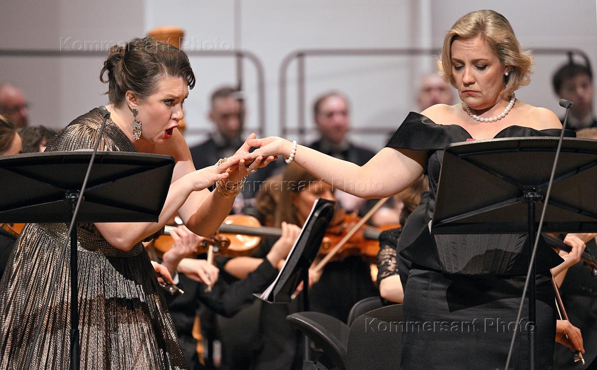 Опера "Лоэнгрин" Рихарда Вагнер в концертном исполнении в Концертном зале имени П.И.Чайковского. Оперные певицы Юлия Маточкина (слева) и Надежда Павлова (справа) во время концерта.
