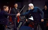 Концерт в рамках программы "Русская музыка 2.0". Пять мировых премьер в исполнении Московского ансамбля современной музыки (МАСМ). Дирижер Федор Леднёв (справа) во время концерта.