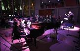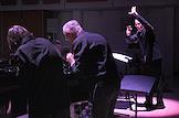 Концерт в рамках программы "Русская музыка 2.0". Пять мировых премьер в исполнении Московского ансамбля современной музыки (МАСМ) под управлением дирижера Федора Леднева в Доме культуры "ГЭС-2". Дирижер Федор Леднев (справа) во время концерта.