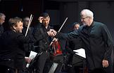 Концерт в рамках программы "Русская музыка 2.0". Пять мировых премьер в исполнении Московского ансамбля современной музыки (МАСМ). Дирижер Федор Леднёв во время концерта.
