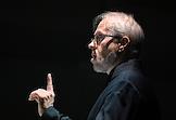 Концерт в рамках программы "Русская музыка 2.0". Пять мировых премьер в исполнении Московского ансамбля современной музыки (МАСМ) под управлением дирижера Федора Леднева в Доме культуры "ГЭС-2". Музыковед Ярослав Тимофеев перед началом концерта.