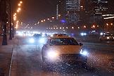 Жанровая фотография. Метель в городе. Автомобили на дороге.