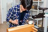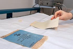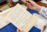 Региональный центр консервации и реставрации библиотечных фондов на базе Воронежской областной универсальной научной библиотеки имени И. С. Никитина. Сотрудник центра во время реставрации книги.