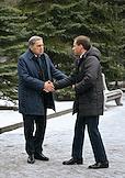 Церемония прощания с послом России в КНДР Александром Мацегорой в Зале прощаний Центральной клинической больницы. Помощник президента России Юрий Ушаков (слева) и министр природных ресурсов и экологии России Александр Козлов (справа) на церемонии.