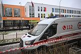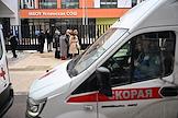 Ситуация рядом с общеобразовательной школой города Одинцово. Успенская СОШ, Горковская средняя школа, корпус № 2, поселок Горки-2. В общеобразовательной школе в поселке Горки-2 Одинцовского округа школьник напал с ножом на учеников и охранника. Автомобиль скорой медицинской помощи у здания школы.