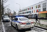 Ситуация рядом с общеобразовательной школой города Одинцово. Успенская СОШ, Горковская средняя школа, корпус № 2, поселок Горки-2. В общеобразовательной школе в поселке Горки-2 Одинцовского округа школьник напал с ножом на учеников и охранника. Автомобиль полиции у здания школы.