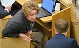 Пленарное заседание Государственной думы (ГД) России. Заместитель председателя комитета ГД России по строительству и жилищно-коммунальному хозяйству Светлана Разворотнева (слева) во время заседания.