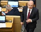 Пленарное заседание Государственной думы (ГД) России. Член комитета ГД России по экологии, природным ресурсам и охране окружающей среды Максим Иванов (в центре) во время заседания.