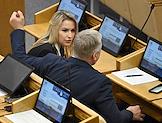Пленарное заседание Государственной думы (ГД) России. Член комитета ГД России по международным делам Мария Бутина во время выступления на заседании.