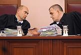 Рассмотрение жалобы Полины Лурье по делу о приобретении квартиры у певицы Ларисы Долиной в Верховном суде России. Судьи судебной коллегии по гражданским делам Верховного суда России Андрей Марьин (слева) и Юрий Москаленко (справа) во время заседания суда.