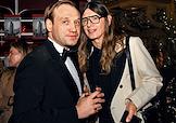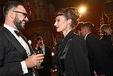 Празднование дня рождения журнала "Москвичка" в магазине "Елисеевский". Телеведущий Дмитрий Шепелев (слева) и предприниматель Седа Каспарова на праздновании.