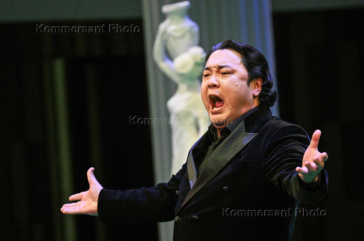 Концертное исполнение оперы "Пиковая дама" режиссера-постановщика Алексея Смирнова в концертном зале "Зарядье". Оперный певец Ариунбаатар Ганбаатар во время концерта.