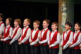 Концертное исполнение оперы "Пиковая дама" режиссера-постановщика Алексея Смирнова в концертном зале "Зарядье". Большой детский хор им. В.С. Попова во время концерта.