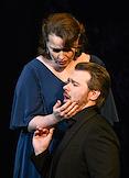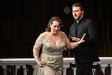 Концертное исполнение оперы "Пиковая дама" режиссера-постановщика Алексея Смирнова в концертном зале "Зарядье". Оперные певцы Елена Стихина (слева) и Иван Гынгазов во время концерта.