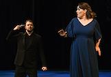 Концертное исполнение оперы "Пиковая дама" режиссера-постановщика Алексея Смирнова в концертном зале "Зарядье". Оперные певцы Иван Гынгазов (справа) и Агунда Кулаева во время концерта.