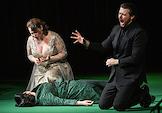 Концертное исполнение оперы "Пиковая дама" режиссера-постановщика Алексея Смирнова в концертном зале "Зарядье". Оперные певцы Ариунбаатар Ганбаатар (слева) и Агунда Кулаева во время концерта.