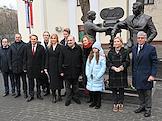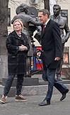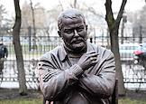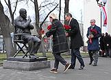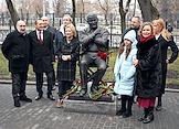 Церемония открытия скульптурной композиции, посвященной создателям многосерийного телефильма "Семнадцать мгновений весны", в сквере у главного входа на Киностудию имени Горького. Памятник писателю и сценаристу Юлиану Семенову.
