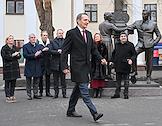 Церемония открытия скульптурной композиции, посвященной создателям многосерийного телефильма "Семнадцать мгновений весны", в сквере у главного входа на Киностудию имени Горького. Директор Службы внешней разведки России Сергей Нарышкин (в центре) во время церемонии.