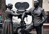 Церемония открытия скульптурной композиции, посвященной создателям многосерийного телефильма "Семнадцать мгновений весны", в сквере у главного входа на Киностудию имени Горького.