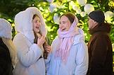 Виды Москвы. Новогоднее украшение города. Жанровая фотография. Девушки на фестивальной площадке "Московские сезоны" на улице Кузнецкий мост.