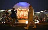 Виды Москвы. Новогоднее украшение города. Жанровая фотография. Фестивальная площадка "Московские сезоны" на улице Кузнецкий мост перед ЦУМом.
